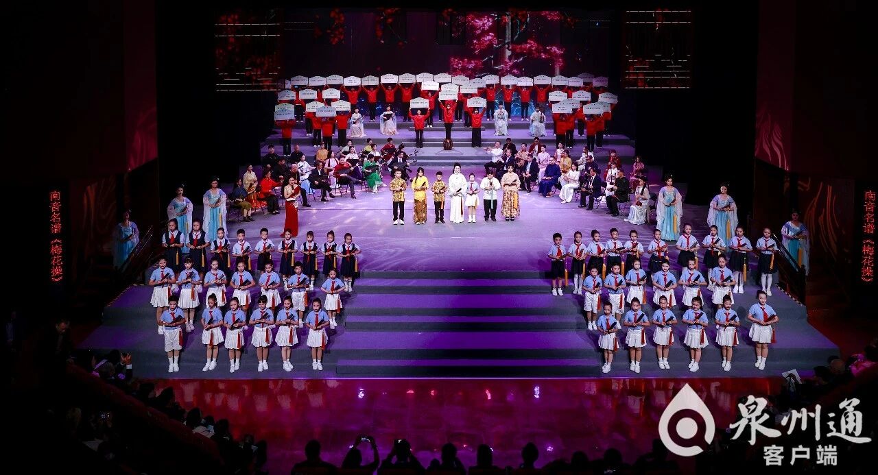专场演出以海内外南音社团代表共同合奏嗳仔指《霏霏飒飒》拉开序幕,《南音魂》《出画堂》《远望乡里》《风打梨》等曲目轮番上演,最后南音名谱《梅花操》将演出推向高潮。此次演出以传统曲目为主,也有过去一年接连斩获“文华奖”和“牡丹奖”的双巅峰之作《南音魂》,该作品的成功创演诠释了南音并非博物馆里的标本,而是能在当代舞台上引发共鸣的“活态艺术”。